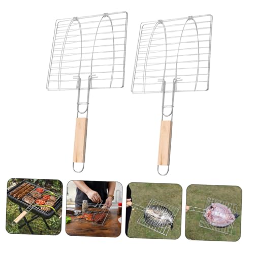 SEWACC 2pcs Fish Grilling Rack Bbq Grill Basket with Sturdy Iron Wire for Outdoor Barbecue Camping Picnic