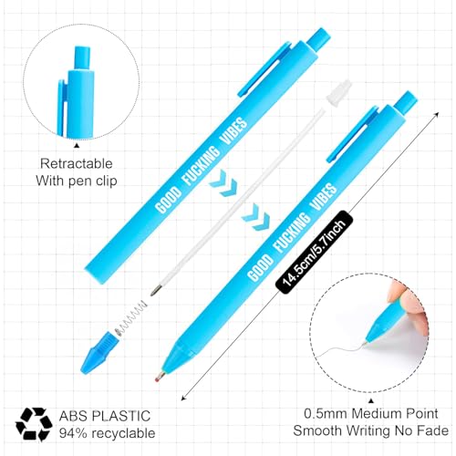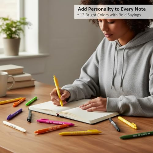- 【The package contains】12 ballpoint pens, each with a different color (there may be two black ones), each pen measures about 14.5 cm/ 5.7 inch, which is convenient to carry, sufficient quantity and styles meet office supplies/ nurse gift/ teacher supplies, 【Unleash the Laughter - Perfect Funny Gifts for Women】 Looking for a hilarious way to brighten someone’s day? These funny pens are the perfect gag gifts for the women in your life! Whether for a birthday, office gift exchange, or just because—these pens will have everyone laughing. Who knew something so simple could make such a big impression?, 【High Quality, High Humor - Fun and Functional】 Not just a pretty face—these pens write smoothly and comfortably, making them as functional as they are funny. Enjoy the best of both worlds with a gift that doesn’t compromise on quality. You’ll get reliable writing performance plus a good laugh every time you put pen to paper., 【Smooth writing】: Click pen, durable, suitable for long-term use; 0.5 mm medium point, black ink is easy to dry, not easy to smear to cause smudges;Easy to hold- stable metal clips, easy to connect to a laptop or pocket, easy to carry around., 【Interesting catharsis】The design inspiration of our interesting ballpoint pen comes from life, each ballpoint pen is printed with different catharsis, which can express your personality, your dissatisfaction with life, vent your emotions, and regulate your mood.