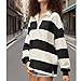 Women Striped Rugby Shirt Oversized Collared Sweatshirt Polo Shirts Y2k Long Sleeve Pullover Loose Tops Streetwear, Black, Large