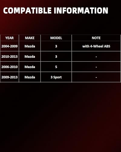 - [Compatibility] 512347 Wheel hub Compatible with 2004-2013 Mazda 3, 2009-2013 Mazda 3 Sport, 2006-2017 Mazda 5., [High-Efficiency Performance] Made of high-hardness forged steel and validated through strict impact tests, it significantly enhances the vehicle's braking efficiency and handling flexibility during driving. Even under long-term and high-frequency use, it can maintain its original shape and performance, achieving long-lasting durability and wear resistance., [Quiet & Stable Driving] The wheel bearing is equipped with advanced sealing technology. It not only keeps the interior clean to extend the service life but also minimizes noise and vibration, creating an undisturbed immersive driving environment for you and completely solving the trouble of abnormal noise., [Precise & Easy Installation] Through precise data modeling and repeated debugging on actual vehicles, the accessory perfectly matches the hole positions and dimensions of the original vehicle. No additional processing is required during installation, which saves time and effort and enables easy damage-free assembly., [Superior material] It is made of high-standard raw materials and processed with fine craftsmanship. It not only has excellent sealing performance to effectively block the intrusion of external impurities and moisture but also features a smooth, flat, and flawless surface texture. Meanwhile, all components rotate stably without jamming, start and stop flexibly without lag, and have reliable quality with moisture resistance and oxidation resistance., [High-quality protection] After-sales products strictly comply with the quality standards of original equipment manufacturers and come with a one-year warranty. We continuously optimize and upgrade our products to provide customers with a higher-quality experience, and will keep working to improve the safety and durability of the products.
