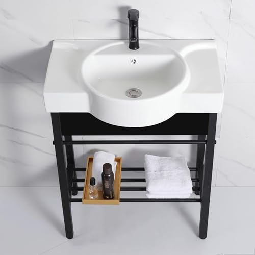 - Crafted at 1280°C with an integral design,this ceramic sink offers large capacity and a smooth,easy-to-clean surface., Excellent stability with legs made of thickened stainless steel and reinforced brackets for long-lasting use., Space-saving design directs water to the drain without additional equipment;includes a towel rack and storage space., Wide application suitable for homes,hotels,restaurants,cafeterias,bars,laundries,balconies,gardens,etc., Multi-functional use as a bathroom basin,in laundry rooms or gardens,or even for washing pets.