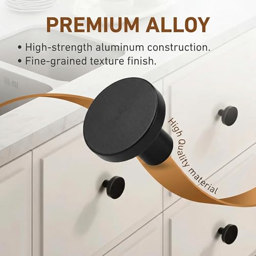 - 【30mm Standard Diameter: Compatible with Mainstream Cabinetry】Featuring a 30mm diameter and 25mm height, this dresser knobs comes with two sets of screws (4.7cm and 2.2cm) for flexible installation on cabinet doors and drawer fronts with thicknesses ranging from 1.8cm to 4cm., 【Premium Aluminium Alloy: Robust and Durable】Crafted from high-strength aluminium alloy, the round cabinet knobs is solidly built and treated with an anti-oxidation finish for corrosion resistance and long-term stability. All edges are finely smoothed, ensuring a smooth, burr-free feel and safe everyday use., 【Modern Matte Black Design: Effortlessly Blends into Various Home Styles】With a classic matte black finish and clean, minimalist lines, the cabinet door handles combines contemporary elegance with versatility. It naturally complements farmhouse, retro, modern, and other interior aesthetics, enhancing the overall visual appeal., 【Pre-drilled Design: Easy to Install】The pre-drilled holes allow for quick and secure fixation using a standard screwdriver, ensuring precise alignment and hassle-free fitting. The user-friendly process makes it easy even for DIY beginners, requiring no specialist skills or complex tools., 【Multi-scenario Application: Ideal for Whole-house Cabinet Upgrades】Each pack includes 10 black cupboard knobs, providing ample quantity to upgrade cabinets throughout the kitchen, bathroom, bedroom, wardrobe, and more. A practical solution for refreshing your home with consistent style, efficiently and conveniently.