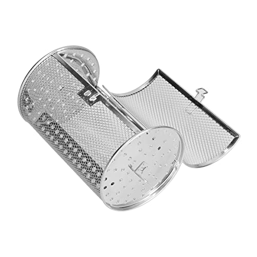 - [WIDE USE] This baking basket is suitable for roasting nuts, coffee beans, chestnuts and other foods, and is widely used in ovens, fryer, outdoor barbecues, etc., [REMOVABLE DOOR] There is a movable door on the front of the grill, and a simple lock helps to close the door to ensure that the food will not fall during the heating process., [DENSE HOLES] This grilling cage has dense holes on the surface, so that the air duct is evenly heated, wear , high temperature , and easy to place in the oven., [BRACKET DESIGN] The two sides are designed with jacks, and the rotating rod can be fixed to realize 360 degree rotating heating, so that the food is heated more evenly., [STAINLESS STEEL MATERIAL] Select stainless steel material, strong anti deformation and anti performance. After use, it should be cleaned and wiped dry.