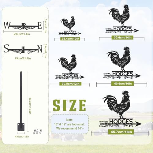 Personalized Rooster Metal Weather Vane, Custom Family Name Weathervane, Wind Direction Indicator, Weather Vanes Roof Mount, Wind Vane Outdoor Decor for Yard Farmhouse Cupolas, Housewarming Gifts