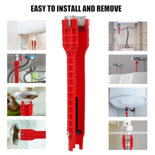 - Convenient Plumbing Tool: Ideal for toilet, sink, and kitchen applications, this Sink Faucet Wrench acts as a multi-functional device, aiding in the seamless dismantling and maintenance of faucets, ensuring smooth functioning in everyday household settings, Sturdy Sink Installation: This Faucet and Sink Installer Tool combines high-strength zinc alloy with durable ABS material to prevent deformation, providing a robust solution for plumbing projects such as sink installations, ensuring long-lasting performance even under demanding conditions while maintaining eco-friendly properties, User-Friendly Design: The multifunctional sink faucet installation tool is crafted for ease of use, allowing users to remove and install faucets quickly while its extended length provides better access during projects, ensuring a smooth experience whether working under sinks or in confined spaces, Reduced Fatigue: By integrating a durable aluminum alloy rod and ergonomic non-slip texture, the faucet and sink wrench ensures consistent performance without causing muscle exhaustion, perfect for extended installation or repair projects at home, Perfect Combination Tool: The multi function sink wrench provides a perfect combination of practicality and convenience, allowing users to access existing water lines with ease while its slotted design ensures adaptability for various plumbing tasks in kitchens or bathrooms, saving time during installations or repairs