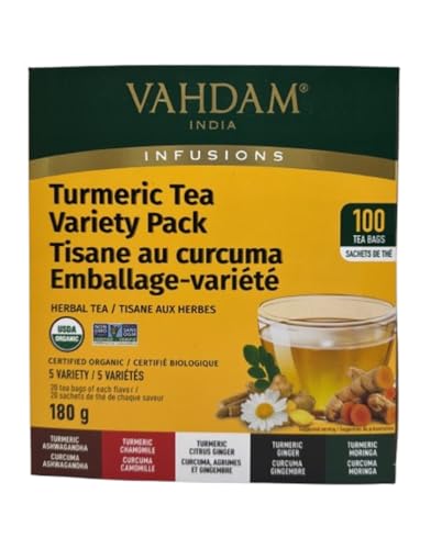 VAHDAM Turmeric Tea Bags Variety Pack – 100 Tea Bags (180 g) | Ayurvedic Herbal Tea Sampler with Turmeric Spices | Caffeine-Free, Detox & Immunity Support, 100% Natural
