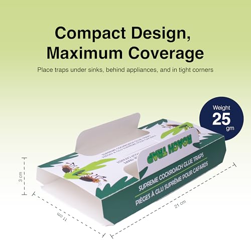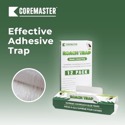 - 【PROFESSIONAL GRADE ADHESIVE PERFORMANCE】Coremaster Inc. Cockroach Glue Traps are built with a high-tack adhesive surface engineered for consistent holding power once insects make contact. The glue layer is evenly distributed across the trapping area to maximize usable surface and maintain steady performance over time. Designed for indoor monitoring and trapping, these boards operate without sprays, vapors, or chemical insecticides. The strong adhesive helps prevent insects from freeing themselves after entering the trap, supporting reliable capture in kitchens, storage areas, basements, offices, and other interior spaces where crawling insects travel., 【LARGER, STURDY MULTI-ENTRY DESIGN】Each Coremaster Inc. trap measures approximately 7.7 x 3.7 inches, providing a generous adhesive surface compared to smaller glue boards. The reinforced paperboard construction helps the trap maintain its structure once folded, allowing it to sit securely along baseboards, under sinks, and behind appliances. The multi-entry design allows crawling insects to enter from multiple directions, increasing contact with the adhesive surface. Once full, the disposable trap can be easily removed and replaced for continued indoor monitoring and trapping., 【INCLUDES FOOD-BASED GRAIN ATTRACTANT】Every trap includes a small pack of food-based grains designed to act as a natural lure inside the trap housing. These grains contain no pesticides, no insecticides, and no chemical active ingredients. Their purpose is simply to help guide crawling insects toward the adhesive surface using a food scent attractant. The grains are placed inside the designated bait area to encourage entry into the trap structure. Combined with the glue surface, this mechanical trapping method enhances effectiveness while remaining pesticide-free., 【EASY, SAFE AND READY TO USE】Coremaster Inc. traps are simple to assemble and require no tools. Open the trap, peel away the protective liner from the adhesive surface, fold along the marked edges, secure the tab, add the grain attractant inside, and place in areas where activity has been observed. The traps are non-toxic and pesticide-free, operating solely through mechanical adhesion. When the adhesive surface becomes full, dispose of the trap and replace it with a fresh unit for continued use., 【MULTI-AREA VALUE PACK】This package includes 12 Coremaster Inc. cockroach glue traps, allowing you to position boards in multiple locations throughout your home or workspace. Placing traps in several strategic areas helps improve coverage and identify activity zones more efficiently. Suitable for kitchens, pantries, storage rooms, basements, offices, and other indoor spaces, these disposable boards provide a practical option for ongoing pest monitoring without complicated maintenance or equipment.