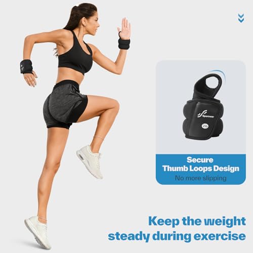 - Sold As A Pair: 1/2 LBS x 2; Fits for wrist perimeter: 5.1-8.6 inches, Dual Fixation Modes for Stability and Flexibility: Sportneer wrist weights features two adjustable modes, the thumb hole for extra stability during high-intensity workouts and a loop-free option for enhanced finger mobility. The arm weights will stay secure and comfortable in any activity, Soft, Skin-Friendly Fabric for All-Day Comfort: Made with eco-friendly, skin-friendly fabric that is gentle to the touch and highly breathable. This arm weights for women excellent sweat-absorbing properties keep your hands dry and irritation-free during workouts, Stylish Design for a Trendy Workout Look: Sleek, modern design with fashionable color options. This hand wrist weights doubles as a fitness accessory and a stylish statement piece that seamlessly complements your everyday outfits, Ergonomic Weights Distribution for Enhanced Comfort: Designed with an ergonomic structure to ensure even weight distribution. It reduces discomfort during use, provides better support, and makes every workout feel effortless and enjoyable, Compact and Portable for Any Workout Scenario: Lightweight and portable, this wrist weights set is perfect for walking, jogging, aerobics, and more. Easy to carry, allowing you to stay active anytime, anywhere