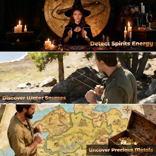 - 【99.9% Pure Copper for Precise Energy Detection 】Crafted from high purity copper, its exceptional conductivity and density capture subtle energy fluctuations with unparalleled precision. Its substantial feel ensures stable operation, while its corrosion resistance guarantees long-lasting durability, 【Wooden Pendulum Board & Crystal Dowsing Pendulum】This five-ring wooden pendulum board features 12 zodiac signs, 26 letters, 12 months, a 'Yes/No' zone and a pentagram zone. Hold the crystal pendulum above the centre, focus on your question, then track the symbol it points to. Blending Eastern and Western mysticism, it provides precise answers to paranormal questions, 【L-Shaped Design — Easy to Swing】The L-shaped design will minimises shaking, ensuring steady handling for ghost hunting or spiritual exploration. Store it in the felt pouch to protect it from magnetism and moisture and maintain the glossy, sensitive finish of the witching sticks for every use, 【Wide Application】Our professional divination tools feature ultra-sensitive energy-sensing capabilities, making them ideal for locating water, gold, minerals and lost items, as well as for ghost hunting and paranormal investigations. They are also effective for energy therapy and enhancing relationships, 【Ideal Gift for Divination Enthusiasts】Our ghost kit includes two L-shaped dowsing rods, a purple crystal pendulum, a wooden board, instructions and an exquisite felt pouch. This complete set of tools is convenient to use and makes the perfect gift for anyone interested in the supernatural