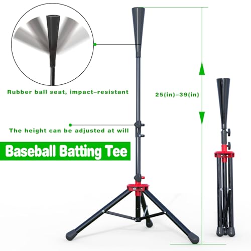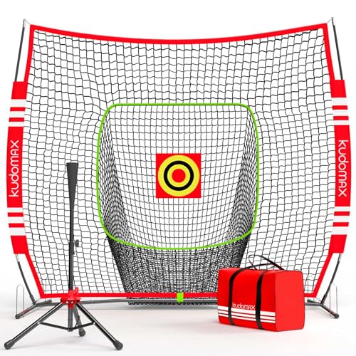 - COMPLETE PRACTICE SET: Includes a 6x6 feet baseball/softball practice net with bow frame, batting tee, and integrated strike zone target for comprehensive training, STURDY CONSTRUCTION: Made from durable nylon material with stable bow frame design, supporting consistent practice for hitting and pitching drills, ADJUSTABLE HEIGHT: Features a versatile height adjustment mechanism that ranges from 25 to 39 inches to accommodate different batting stances and player heights, VERSATILE TRAINING: Features built-in strike zone and target for focused practice, perfect for both batting and pitching exercises, PORTABLE DESIGN: Quick setup and breakdown,No tools required,with included carrying bag, for easy transportation and storage