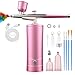 Airbrush Kit with Compressor, Bornbyme Airbrush for Nails Paint Sprayer DIY Air Brush Spray Gun for Painting, Ombre Nails, Makeup, Cake Baking, Barber and Tattoo, Pink