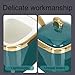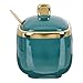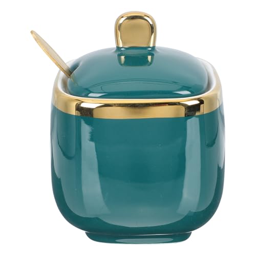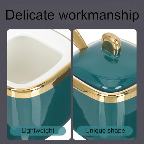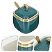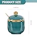 Sewroro Ceramic Household Seasoning Jar Set with Lid and Spoon 300ml Green Square Spice Canister Condiment