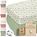 Infancie 100% Organic Cotton Crib Sheets Set of 2, 71 X 132 CM Crib Sheets for Boys and Girl Soft Breathable Durable Fitted Crib Sheet Bedding for Newborns and Infants (Green/Floral)