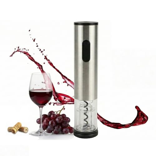 - 【One-Touch Automatic Operation】 – Simply place the opener on the bottle and press the button—the automatic mechanism handles the rest. It removes corks smoothly in seconds, eliminating the effort and struggle often associated with traditional corkscrews., 【Transparent Design for Clear View】 – Crafted with a combination of stainless steel and clear PC material, this battery operated corkscrew allows you to watch the cork removal process in real time. The durable construction ensures reliable performance while adding a modern touch to your kitchen or bar setup., 【Built-In LED Illumination】 – A soft blue LED light automatically activates when the opener is in use. This thoughtful feature provides clear visibility when opening wine in dimly lit settings, such as evening dinners, parties, or outdoor gatherings., 【Portable Battery-Powered Design】 – Powered by 4 AA batteries (not included), this cordless opener offers true portability. Bring it along to picnics, camping trips, or cottage getaways without worrying about finding a power outlet. Its compact 9.2 x 2 x 2-inch size fits easily into travel bags., 【Versatile Gift for Any Occasion】 – Whether hosting a dinner party, enjoying a relaxing evening at home, or celebrating a special event, this electric wine opener makes every pour effortless. Its elegant silver finish and practical functionality also make it a thoughtful gift for wine lovers, friends, or family members.