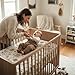 - 🌿 UNIVERSAL FIT FOR BEDSIDE BASSINET: Specifically designed to fit almost any bedside bassinet or co-sleeper. Our premium bassinet fitted sheet features a high-stretch elastic band that securely hugs standard 33"x17" oval, rectangle, or hourglass mattresses, ensuring a safe sleep surface., ☁️ 100% BREATHABLE MUSLIN COTTON: The ultimate choice for newborn essentials. Made from double-layer organic cotton muslin, these sheets allow superior airflow to prevent overheating. They are much softer and safer than polyester alternatives found in common bassinet sheets., 🎨 MATCHES YOUR BABY LOUNGER PILLOW: Create a cohesive, Instagram-ready nursery! These boho-style sheets are designed to color-coordinate perfectly with your baby lounger pillow, changing pad covers, and swaddles, elevating the look of your entire room., 🔄 SOFT & DURABLE 2-PACK SET: You get two wash-durable sheets. The natural crinkle texture gets softer with every wash, providing a cozy, cloud-like environment for your baby to sleep in their bassinet. No ironing needed—just wash and reuse., 🎁 PERFECT GIFT FOR NEW PARENTS: A practical and stylish addition to any baby registry. Whether for a boy or girl, these neutral bassinet sheets are the perfect gift for baby showers, helping new parents stock up on high-quality newborn essentials.