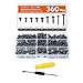 360 PCS Self Tapping Metal Screws, Cross Head Black Screws Assortment, Carbon Steel Pan Head Screw, Anti-Rust Self Tapping Screw for Repairing with Storage Box