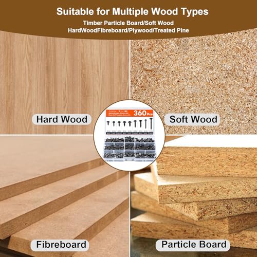 - Packaging Contents: 9 different sizes black self tapping screws: 30 pcs M4*10mm; 60 pcs M3*12mm; 40 pcs M3.5*12mm; 30 pcs M4*12mm; 30 pcs M5*12mm; 40 pcs M3.5*16mm; 30 pcs M4*16mm; 60 pcs M3*20mm; 40 pcs M3.5*25mm. Also included is 1 screwdriver. Sufficient quantity allows you to match different size screws according to your DIY project, Anti-rust Performance: These self-tapping screws are made of high-grade carbon steel with a zinc-plated surface, offering good toughness and wear resistance. The coating helps reduce rusting, especially in slightly humid environments, allowing the screws to maintain good condition for an extended period, Fine Craftsmanship: The black screws feature smooth threads without rough edges, ensuring steady gripping force during use. Their pan-head design not only supports effective drilling and tightening but also minimizes potential damage to workpieces, Wide Application: Suitable for use with wood, soft metals, and plastic (common materials in daily repairs). They work well for DIY crafting, furniture maintenance, small household fixes, and basic woodworking tasks, Easy Storage & Carry: A sturdy attached storage case is divided into 9 separate sections. It helps sort and organize different screw types clearly, making screws easy to find—ideal for both home storage and occasional on-site use
