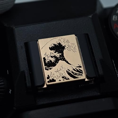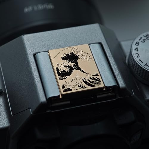 Kanagawa Sea Wave Painting Camera hot Shoe Cover Camera Shutter Button Suitable for Fuji X-T50 X-S20 X-S10 X-T4 Suitable for Nikon Z6iii Z7 Z50 ZF (Brass YH Button) (Brass hot Shoe Cover)