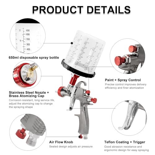 R500 LVLP Air Spray Gun with 650ML Disposable Paint Cups, 1.3/1.5/1.7/2.0mm Nozzles, R500 Paint Guns Automotive LVLP Car Paint Gun Sprayer for House Painting, Car, Furniture, Varnish and Top Coat