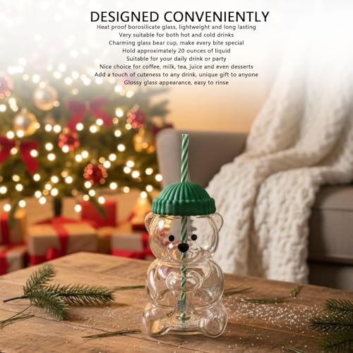 - LIGHTWEIGHT AND PORTABLE: The bear straw cup is made of quality heat proof borosilicate glass, which is lightweight and long lasting, and is very suitable for both hot and cold drinks, CUTE DESIGN: This charming glass teddy bear cup makes every bite special. When filled with your favorite drink, the beautiful design creates a charming bear illusion, LARGE CAPACITY: The cute straw cup can hold approximately 20 ounces of liquid, making it suitable for your daily drink or party, very versatile, VERSATILE AND FUN: This straw cup is a nice choice for coffee, milk, tea, juice and even desserts, which adds a touch of cuteness to any drink and can also be a unique gift to anyone, EASY TO WASH: The cute straw glass cup is designed conveniently, and the glossy glass appearance is easy to rinse. Hand washing is safe, more convenient