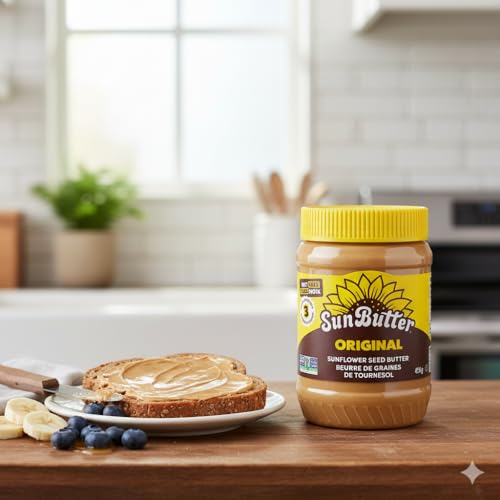 - Made from roasted sunflower seeds plus a touch of sugar and salt, delivering rich savoury flavour without peanuts or tree nuts., Each 2-tablespoon (32 g) serving provides about 200 calories, 16 g fat, 7 g plant-based protein and 3 g dietary fibre — a balanced source of nutrients., Nut-free, gluten-free, non-GMO and certified free from the top common allergens, making it suitable for allergy-aware households., Versatile spread that works well on toast, sandwiches, in smoothies, or as an ingredient in baking and cooking — offering a peanut-free butter alternative., Two-jar pack gives you ample supply for daily use, family meals, or meal prep without frequent reordering.