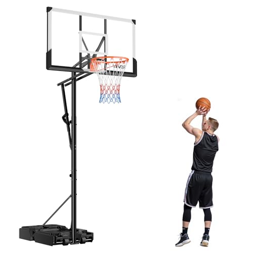 VEVOR Portable Basketball Stand, 5.25 to 10 ft Height Adjustment Basketball Hoop & Goal, Portable Basketballs Hoop with 44 inch PC Backboard & Wheels for Kids, Teens, Adults in Driveways, Pools