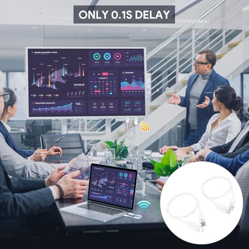 - Wireless HD Sync: Through the receiver and transmitter, video output devices with HD multimedia interfaces can wirelessly transmit sound and high definition images simultaneously to large display terminals such as TVs and projectors., Dual Mode Screen Sharing: The intelligent HD wireless transfer system supports both screen casting and screen mirroring modes. It mirrors the screen in real time to a large display with the same content, or extends the screen as a second display. This allows you to expand your current computer desktop, creating distinct areas for work and entertainment, provided that both the computer and the device support this feature., Advanced Transfer Efficiency: With a built in 5GHz 1T1R antenna and advanced 5GHz standard technology, the extender kit achieves fast and more stable transfer efficiency, minimizing the possibility of signal interference and disconnection., Simple Operation: Easily screen cast by simply connecting the large display and power cable, without delays. Devices without an HD multimedia interface, such as laptops, tablets, and phones, require an HD multimedia adapter to be used., Plug And Play: No internet connection is required, just plug and play. Excellent for big screen movies with real time synchronized playback, as well as meetings, presentations, and sharing sessions. One click screen casting empowers effortless control.