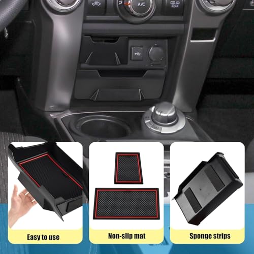 - The center console storage organizer is compatibility with for Toyota 4Runner 2014-2024,3D laser precision design,perfectly matching your car. Note:Only compatible with for models with 2 storage cubbies.Not compatibility with for Toyota 4Runner 2010-2023,Not for Toyota 4Runner 2025+,Not suitable for some trim levels or models might not come with these two cubbies and might have a full switchplate there instead,or models with only 1 storage cubbies., The storage drawer box is made of high-quality ABS,sturdy and stable,tasteless,scratch resistant,anti-aging,not easy to deform or damage.The detachable high-quality PVC anti slip pad is easy to clean and effectively protects items from sliding and collision damage.The antiskid foam on both sides of the storage drawer firmly fixes the storage drawer in place to prevent the storage box from loosening or falling off when driving., The storage drawer is easy to install and use,without the need for any tools,just place it in the appropriate position.Designed with a handle,for easy to pull out.No matter sudden turns or stops,the fit ensures that the tray will not move or fly out. Perfectly matched with the car,will not interfere with the functionality of the center console buttons., Putting the storage drawer box in place is quite simple. Just set it in the correct position, and it will latch onto the console securely. The snugness of the fit ensures that the trays don’t shift, regardless of sharp turns or sudden stops. Enjoy the effortless functionality of your console organizer,the storage drawer is easy to install and use,without the need for any tools,just place it in the appropriate position.Designed with a handle,for easy to pull out.No matter sudden turns or stops,the fit ensures that the tray will not move or fly out. Perfectly matched with the car,will not interfere with the functionality of the center console buttons., The luster of the drawer surface perfectly matches the interior of the 4runner and looks like an original car accessory. Moreover, the mold opening is precise and will not affect the use of the original vehicle button functions,this innovative accessory transforms those small, empty, and practically useless cubbies into functional storage spaces., Keep car interior space well-organized,It's time to get rid of chaos,providing designated compartments for various items.This makes it easier to keep essentials organized,preventing clutter and ensuring a tidy interior.The thoughtful organization promotes accessibility and ensures that essential items are within easy reach while driving.