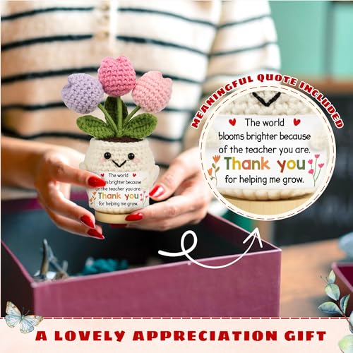 LUCAGIFT Teacher Appreciation Gifts - Teacher Gifts for Women - Teachers Appreciation Week, Thank You Crochet for Teachers Women - Knitted Emotional Inspirational Positive Tulip Flowers Crochet