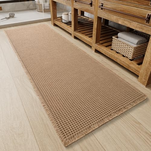 Upgraded Waffle Bathroom Runner Rug, Super Absorbent Bath Mats Non Slip Machine Washable Long Bathroom Mat Soft Bath Runner Rugs for Hallway Entryway Bedroom Laundry Room Sink, 2' x 5'