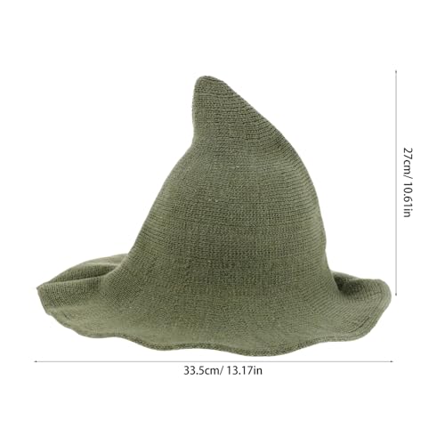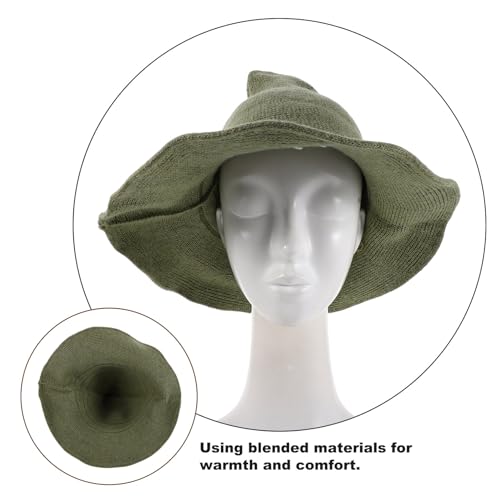 SEWACC Halloween Witch Hat for Adults, Green Wool Felt Pointed Wizard Hat Wide Brim, Medieval Cosplay