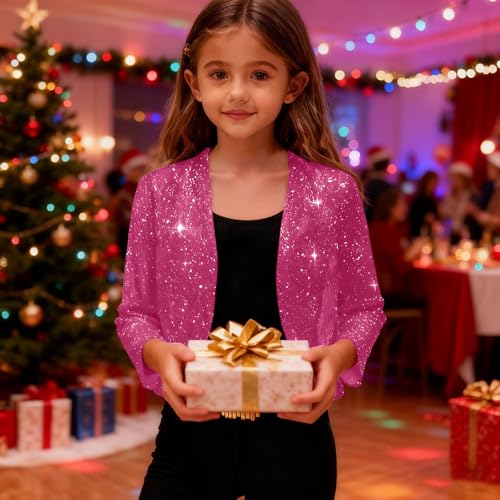 Girls Open Front Long Sleeve Sparkly Cardigan Shrug Bolero Coat Glitter Print Outerwear Spring Outfits for 3-14 Years