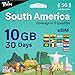 TSIM South America eSIM 30 Day-10GB | Multi-Operator 5G/4G Network (Hotspot Allowed) | Use in Brazil, Chile, Colombia, Argentina, Costa Rica, Ecuador & More | eSIM in 24 Hours | Auto-Activating.