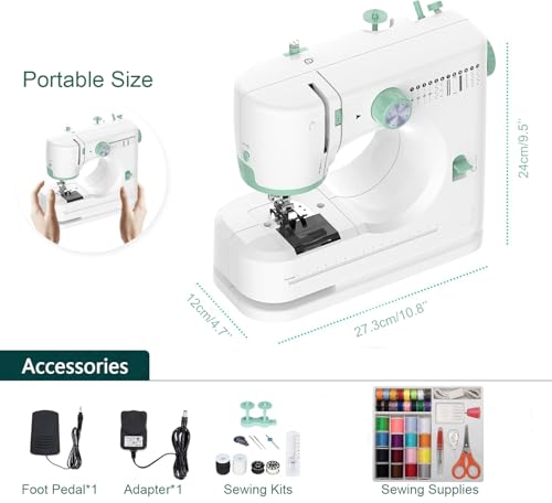 Mini Sewing Machine for Beginner by Lucium (Sewing Supplies set included) - Small Sewing Machines with Two Needle Types, Two Speeds, LED Sewing Light, Foot Pedal LC-073-CA-A2