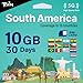 TSIM South America SIM Card 30 Day 10GB | Multi-Operator 5G/4G Network (Hotspot Allowed) | Use in Brazil, Chile, Colombia, Argentina, Costa Rica, Ecuador & More | Auto-Activating.