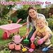 - Complete Kids Gardening Set: This set includes a wheelbarrow, 2 shovels and a rake, protective gloves, watering can, 2 planters with saucers, and plant tags—all sized for small hands. Let kids dig, plant, and water like real gardeners, sparking their love for nature!, Versatile Indoor & Outdoor Use: This set works for garden, yard, beach, and year-round outdoor fun all seasons long: spring planting, summer sand play, autumn leaf raking, and light winter snow play. It also works great for indoor activities like small gardening projects and tabletop planting, bringing joy to kids no matter where they play!, Hands-On STEM Learning Toy: This gardening set lets kids explore plant growth through hands-on play, building key skills like fine motor control, hand-eye coordination, focus, and creativity while learning basic gardening skills in a fun and practical way., Durable & Safe Material: Made from high-quality, BPA-free PP with smooth, rounded edges, this kids’ gardening set is gentle on little hands and gives parents total peace of mind. The two metal shovels and metal rake with sturdy wooden handles are built tough for real digging and actual gardening use—not just pretend play!, Ideal Gift for Ages 3+: Vibrant pink color and attractive gift-ready packaging make it a wonderful present for birthdays, holidays, or as a garden party favor. Suitable for toddlers, preschoolers, and young nature lovers—blending fun, education, and outdoor adventure into one delightful set. Give the gift of growing memories!