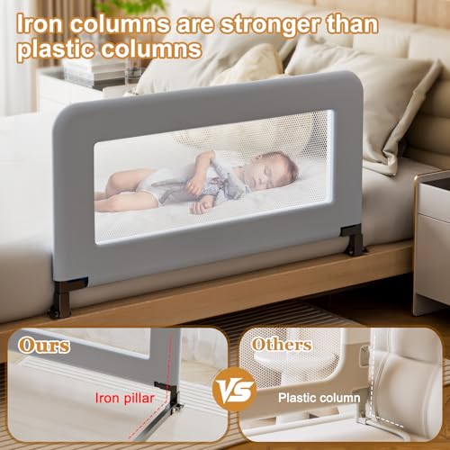 - 【Wider U-shaped Base for More Stability】Our toddler bed rail features an extra-wide U-shaped base, wider than the standard design base, reaching approximately 17 inches wide, it increases the bearing area, improves load-bearing capacity, protects the safety of your toddler, and creates a safe sleeping environment for babies., 【Easy & Quick Installation】This toddler bed rail is designed for tool-free installation that can be completed in minutes, saving you time and energy, ensuring your baby sleeps soundly and giving parents peace of mind., 【Enhanced protection and durability】The bed guardrail is a safety guardian for babies and children. It adopts a solid square steel frame, which is more stable than ordinary designs. Our guard rail pipes are wrapped with a layer of anti-collision foam, which can effectively avoid accidental collisions and provide safety for your children., 【Easy to clean and comfortable design】Made of soft and breathable mesh fabric, our crib rails ensure your child's comfort and allow busy mothers to easily monitor their sleeping baby. The fabric cover is easily removable for cleaning, and the soft foam padding protects your toddler., 【High-quality after-sales service】We are committed to developing and providing higher quality crib guardrails. If you have any questions or problems when using our crib guardrails, please feel free to contact us and we will do our best to handle it for you.