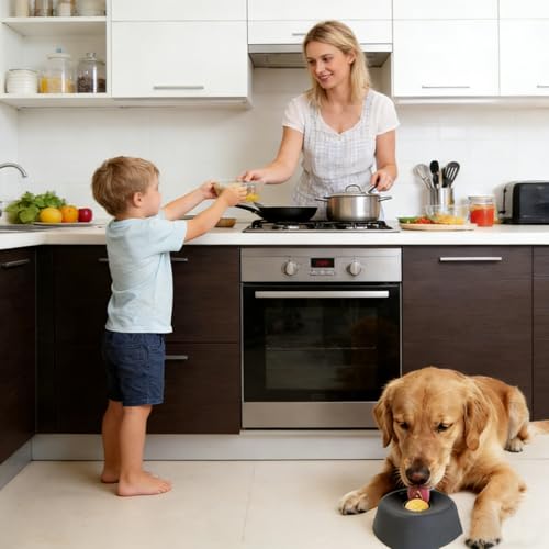 - Enhanced Anti-Spill Drinking: Designed with an anti-spill feature, the Dog lick Bowl employs a slow-flow ball mechanism to prevent splashes, allowing dogs to drink water comfortably indoors without creating water messes on floors or carpets, Widely Applicable: This lick bowl for dogs accommodates the dietary requirements of all dog breeds, providing a versatile solution that adapts to individouble health needs, fostering better digestion and satisfaction across diverse feeding scenarios, making it an ideal choice for households with mixed-breed pets or multi-dog families, For Picky Eaters: The dog liquid lick bowl is designed to engage picky eaters by preserving nutrients through freshness-lock technology, ensuring your pet enjoys a flavorful and nutritious mealtime experience while enhancing their interest in eating during extended play sessions, Effortless Maintenance: The lick bowl features a no-dead-zone design and stain-resistant finish ensuring quick water rinsing and easy cleaning which saves time during floor maintenance while keeping your space hygienic and tidy especially in busy kitchens or pet areas, Slow-Feeding: Designed to extend eating time, the dog licking bowl supports digestive health with its interactive surfaces, creating a calming effect during meals and benefiting pets prone to rapid consumption habits