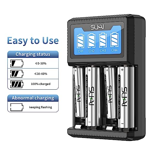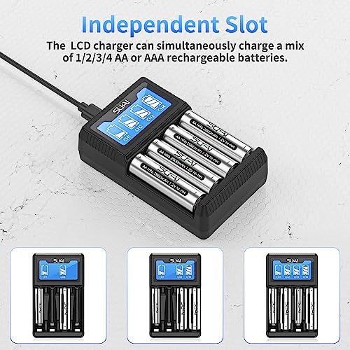 AA AAA Battery Charger, 4 Slot LCD Smart Rechargeable Battery Charger for Ni-MH AA AAA Rechargeable Batteries (No Adapter)