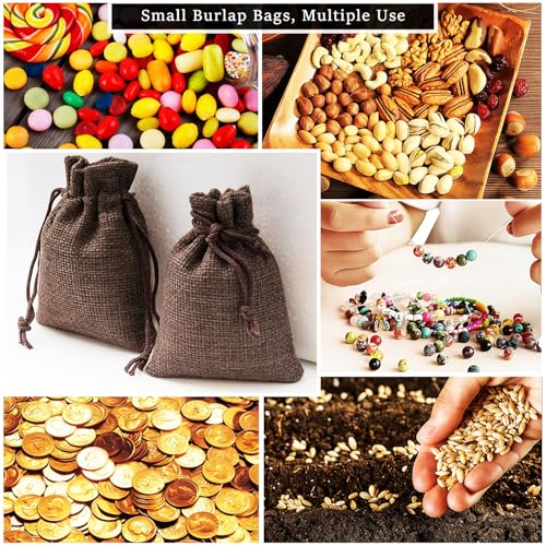 - Quantity and Size: It comes with 50pcs small burlap bags, each burlap bag measures 9x7cm, please check the size firstly before order, Drawstring Design: Our burlap gift bag adopt with double drawstring and double wire harness design, it is more convenient to close and open, and not easily fall out to prevent items from getting dirty, Soft and Durable: These drawstring gift bags are made from high quality natural linen, eco-friendly, durable and reusable, the inner material is lined with cotton, soft to prevent your items from being scratched, Multi-Purpose: Our burlap bag is perfect for storing various small gifts, jewelry, candy, goodies, coffee beans, seed, coin, crafting and other small items, Widely Used: Burlap drawstring bags are easy to use for gift wrap bags and favor bag on Wedding, Birthday, Anniversary, Christmas, Thanksgiving and other holiday
