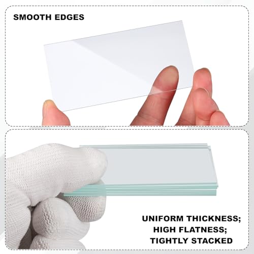 - Material: glass; Size: 40x40mm / 1.57x1.57 inch; Thickness: 1mm, Advantage: High temperature resistant acid and alkali glass plate has high light transmittance, smooth surface, no defects, and is tightly packed. It has high transparency and good light transmittance; uniform thickness; high flatness; smooth edges that will not hurt your hands., Instruction: If dust on the lens surface, blow on it a few times with a clean balloon to remove it., Lab Glass Slides Microscope Glass Slides are used for qualitative and quantitative analysis of various compounds, laboratory experiments, separations, food safety testing, and separation and identification. This optically true lens set is excellent for physics in optics and light refraction., Note: When not in use, place glass lenses on a soft surface. Avoid placing bare lenses directly on glass, metal, tables, or dirty paper, as this can easily scratch them. Avoid contact with materials that may corrode the glass surface.