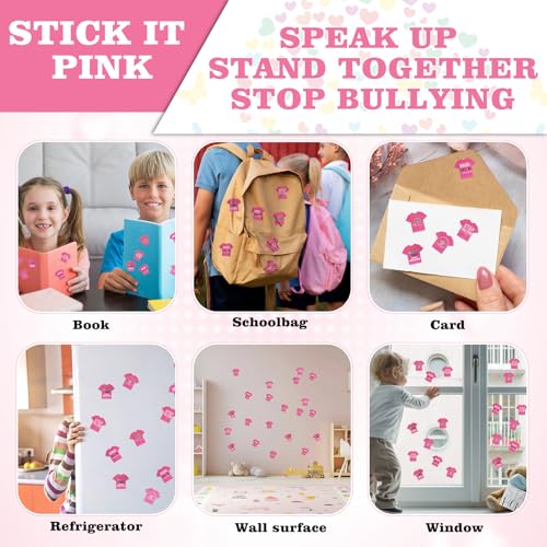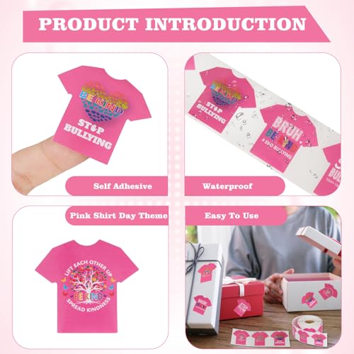 - Pink Shirt Day Stickers:This roll includes a total of 500 individual stickers, making it an excellent choice for schools, community organizations, workplaces, and events. The large quantity ensures there are plenty of stickers to share during Pink Shirt Day activities, anti-bullying campaigns, classroom rewards, fundraising events, or awareness initiatives, offering great value for bulk use., Unique and Meaningful Designs:The stickers feature five distinct Pink Shirt Day–themed designs, including positive messages such as “Be Kind,” “Stop Bullying,” and “Pink Shirt Day.” The variety keeps the stickers visually engaging while reinforcing important messages of kindness, inclusion, and anti-bullying awareness. The bright pink color and cheerful graphics appeal to both children and adults., Premium Material:Crafted from premium eco-friendly coated paper, these stickers deliver a smooth, professional finish while embracing sustainability. Featuring stretch resistance and high-temperature tolerance, the coating process enhances print clarity and color saturation, ensuring designs remain vivid and eye-catching. They showcase design appeal while maintaining environmental responsibility., Vibrant, and Durable:Designed to last, the stickers are waterproof and resistant to everyday wear. The vibrant colors do not easily fade, making them suitable for use on notebooks, water bottles, folders, gift bags, envelopes, and event materials. Their durability ensures the message of kindness stays visible throughout the day and beyond., Easy-to-Use:Packaged on a convenient roll, the stickers are easy to peel and apply, saving time during large events or group activities. They adhere well to most smooth surfaces without curling or falling off, making them ideal for fast distribution, decorating, or rewarding participation during Pink Shirt Day celebrations.