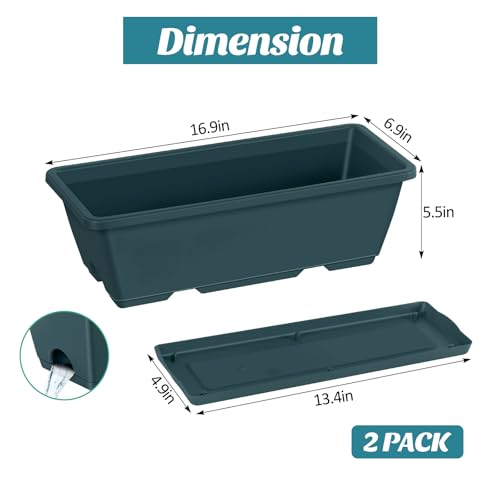 - 2 Pack Window Boxes: The package contains 2 railing planter boxes, with dimensions of 16.9 x 6.9 x 5.5 inches. They have ample capacity and can accommodate various flowers or herbs simultaneously. They are suitable for being placed in groups on balconies, patios, porches or windowsills, quickly transforming into lush green landscapes or themed flower strips., Multifunctional design: The window boxes has adjustable metal brackets and two installation methods, it can be securely fixed on various railings with widths ranging from 1.6 to 4.9 inches. Suitable for both indoor and outdoor use, it can be used for growing ornamental flowers, as well as cultivating herbs, small vegetables or small fruit trees, achieving a balance between aesthetics and functionality in planting needs., Save space: This compact yet spacious flowerpot is perfect for users of apartments, balconies or residences with limited outdoor space. The hanging design can fully utilize the vertical space of railings and window sills, freeing up floor space while significantly increasing the planting area. It is an ideal choice for creating a "three-dimensional garden" in small spaces., Durability construction: Composed of sturdy materials and stable metal supports, it can withstand outdoor conditions. The bottom ventilation holes and the tray designed to collect excess water ensure good drainage and air circulation, preventing root rot caused by water accumulation and maintaining an appropriate humidity level in the tray, which is beneficial for the healthy growth of plants., Easy Installation: The planter box comes with a detailed illustrated installation manual and the necessary accessories. Under normal circumstances, installation can be completed without additional tools. The bracket can be quickly adjusted and fixed. If you encounter any assembly or usage problems, please let us assist you. This way, you can easily install the garden on various railings and quickly enjoy the pleasure of gardening.