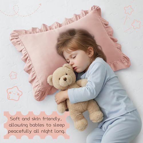 - Ultra-soft: The toddler pillowcase is only made of cotton material, with a soft touch, which can care for the delicate skin of babies and is suitable for sensitive skin. It can be used all year round., Sweat absorption: The toddler pillow case is comfortable and breathable, able to quickly absorb the sweat produced by the baby's sleep, keeping the head dry and ensuring comfort throughout the night., Ruffle design: The natural folds and waves formed by the lotus leaf edge make the pillowcase look very lively, layered, and full of childlike fun., Multi functional use: The travel pillow case is very suitable for various occasions such as home, school, travel, and can also be used as a decoration for baby beds., Washing instructions: It is recommended to gently machine wash in cold water, dry at low temperature, and not bleach. After multiple washes, it will become even softer.