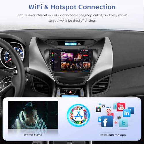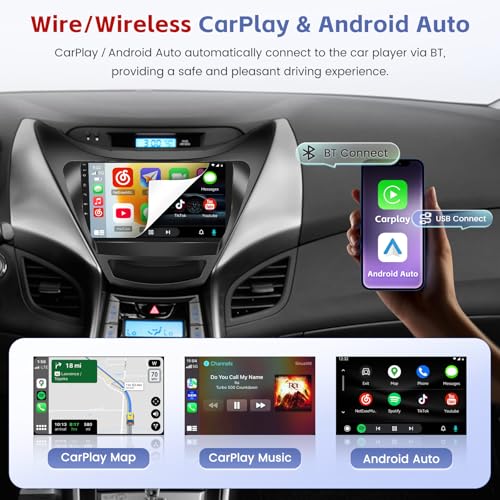- 【Perfect Compatibility】 This Android car radio fits for 2011 2012 2013 Hyundai Elantra, which features an 1280*720P HD resolution IPS hard screen for wide viewing angles, delivering consistent, vivid color from any seat without graying. Powered by a high-performance octa-core processor and 6GB+128GB large memory, the system runs as smoothly as a phone, responding instantly, 【Wired & Wireless CarPlay/Android Auto】The touch screen for 2011 hyundai elantra lets you connect seamlessly, both wired and wirelessly. Activate voice assistants to manage navigation, messages, and music completely hands-free, all while keeping your phone charged or tangle-free, 【Navigation & WiFi Hotspot】This Android car radio for hyundai elantra 2012 allows you to enjoy built-in GPS support for online (WiFi connection required) and offline navigation apps from the Goo-gle Play Store, ensuring you're never lost on the go, with the latest map updates (Support GPS, BeiDou, Galileo, GLONASS navi system), 【Bluetooth & EQ & DSP】Take control of your sound like a pro. With a 32-band EQ and DSP, fine-tune every frequency to match your music style. Bluetooth 5.0 ensures rock-solid connectivity for seamless streaming and crystal-clear calls. Every audio source gains rich detail, turning your commute into a front-row experience, 【Optional UI and Split-Screen】This Android stereo for 2012 hyundai elantra CarPlay screen comes with 41 desktop themes that allow you to personalize the interface. This radio for 2007 Forester dash kit also supports a split-screen feature, and you can enjoy dual media on the same screen