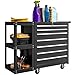 - Spacious Storage: Stay organized with seven drawers and an added detachable three-tier shelf that keeps your go-to tools and sprays within reach. This rolling tool chest neatly gathers scattered tools, turning clutter into order for quick, easy access, Effortless Mobility and Control: Maneuver your tool cabinet easily with four 3.9" (10 cm) PP wheels and a side handle. It glides smoothly to where you work and parks securely after a simple press with the fix wheels and swivel wheels with brakes, Solid Steel Build: Made with a thickened steel structure, this powder-coated rolling tool box achieves a total capacity of 264 lbs. (120 kg). It's a reliable camp for your tools, providing a reliable, lasting home for your projects, Smooth and Protective Drawers: Each drawer glides on ball-bearing slides for effortless and smooth access. The inner EVA mats on the tool chest drawers protect your tools, preventing scratches and helping to soak up grease, Central Locking for Security: Locks all seven drawers by one lock, keeping your valuable tools safe and giving you peace of mind. Your gear is secure inside this tool chest, even when you need to step away from your workspace. Two keys included