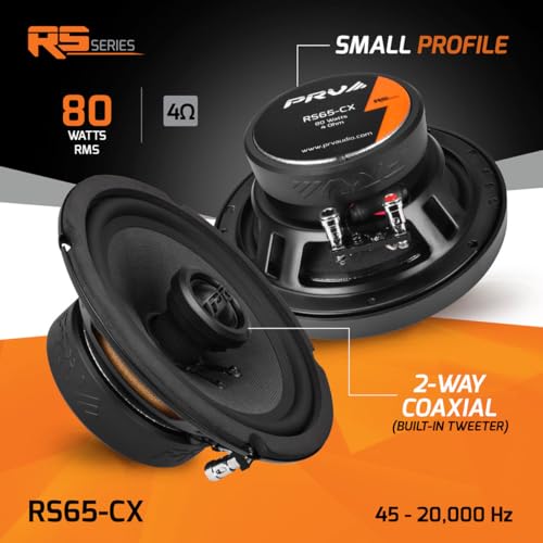PRV - RS65-CX 6.5" 2-Way Coaxial Speakers - 160W Max, 80W RMS, High-Fidelity 4-Ohm Car Audio Door Speakers with Integrated 20mm Silk Dome Tweeters (Pair)