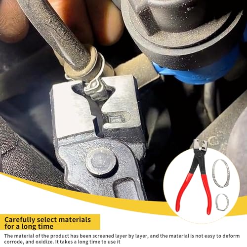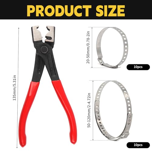 - 【Package Contents】You will get 20pcs cv boot clamp pliers with cv boot clips kit, Including 1pcs hose clamp pliers and 10pcs small cv boot clamps(height: 7mm), 10pcs large cv boot clamps(height: 9mm). In total 21pcs can meet all your different daily needs., 【Efficient 2-in-1 Operation】Equipped with an integrated cutter and winding mechanism, the clamp installer allows fast tightening and precise cutting of banding straps in one step—saving time and effort on every repair. Compatible with 1/2" extension handles or torque wrenches for added versatility., 【Premium Corrosion-Resistant Build】Made from hardened 45 steel and stainless steel with a black-coated finish, this CV boot clamp tool ensures exceptional corrosion resistance, oil resistance, and wear protection. Built for heavy-duty use in both professional garages and DIY projects., 【Ergonomic & Labor-Saving Design】Featuring reinforced jaws and a non-slip insulated handle, the pliers deliver maximum grip and comfort. Designed to reduce hand fatigue, making long-term maintenance tasks easier and safer., 【Application】This cv joint cv boot tool is suitable for most vehicles and is also ideal for installing clamps on fuel filters, water pumps, CV joint boots, ATV axle boots and other cooling system hoses.