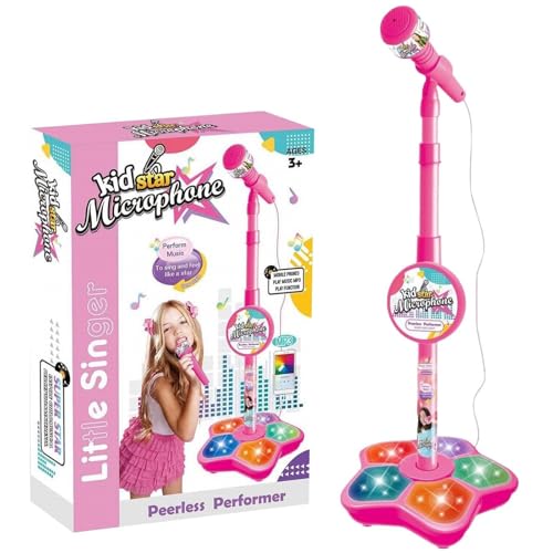 - 【All-in-One Microphone Toy】The Star Microphone with Stand is not just a kids microphone; it’s a portable karaoke machine for kids, designed to provide hours of fun and entertainment at birthday parties and beyond!, 【Captivating Light Show】With enchanting LED lights, this kids microphone creates a dazzling light show that transforms any performance into a concert-like experience, captivating your child's imagination during singing sessions., 【Durable Portable Construction】Engineered with rugged materials that withstand frequent use while maintaining lightweight comfort for extended handling. This karaoke machine toy with light delivers reliable performance whether used at home or transported to different locations., 【Adjustable Stand Included】Features a fully adjustable microphone stand that accommodates various heights and performance scenarios. Our star microphone with stand provides hands-free operation during extended singing sessions or group performances., 【Ideal Gift for Any Occasion】Searching for the perfect gift? Look no further! The Star Microphone with Stand makes an exciting birthday gift for girls or a delightful holiday surprise, promising to be a hit among kids and parents alike.