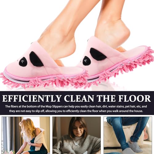 Yardwe Cute Panda Mopping Slippers for Women, Pink Dust Cleaning Mop Slippers with Silent Floor Sweeping